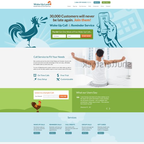 Existing Wake Up Call Reminder Site Needs A Facelift Web Page Design Contest 99designs